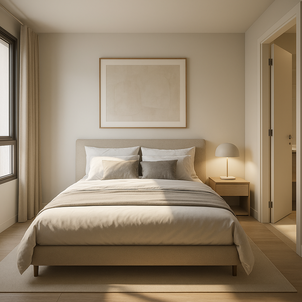 Diferenciais: Localização central no bloco, combinando privacidade e equilíbrio — não diretamente voltado para a piscina, mas com ventilação cruzada e ótima iluminação natural.
